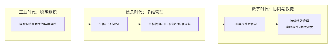 - 目标从分配优先转为有效性优先:绩效不再首先服务于把钱分完、把人排队,而是服务于战略对齐、关键行为强化、能力成长,此时的分配仍然重要,但它更像结果应用之一,而不是唯一目的。