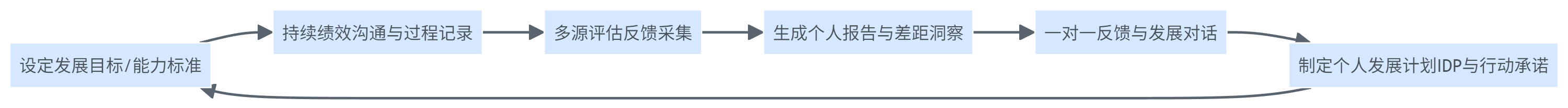 - 发展动作缺乏抓手:当反馈被映射到能力模型与行为标准,IDP才有明确着力点,否则发展计划容易流于多学习、多沟通这类空泛表述。