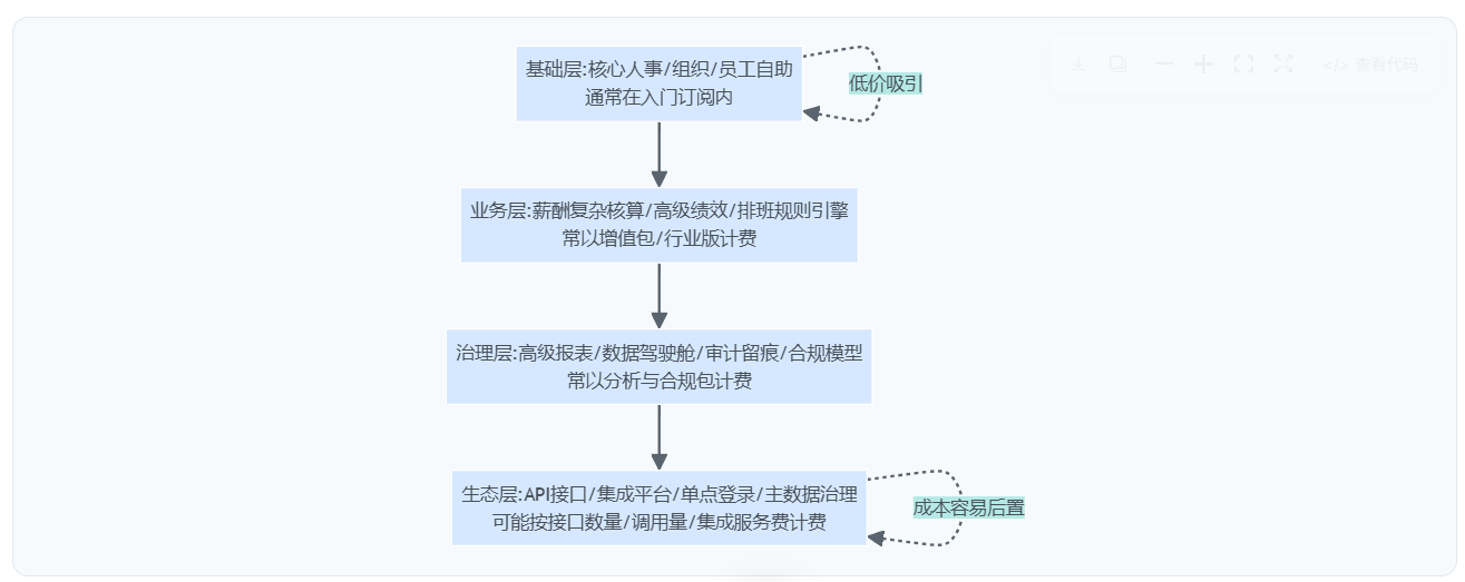 不少企业在立项时的直觉是:SaaS订阅制价格透明、按年付费可控;但从实践看,核心人力系统往往是“牵一发动全身”的基础设施——一旦组织全员上线、数据与流程被系统绑定,成本结构就从“软件费用”扩展为“许可+模块+集成+实施+运维+升级+退出”的组合。预算翻倍并不罕见,关键差异在于:签约前有没有把计费口径、边界条件和变更机制问到可以落合同附件的程度。