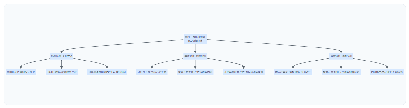 集团要真正管住一体化HR系统的隐性收费,关键不是列清单“逐项砍价”,而是建立覆盖选型、实施、运营的TCO防御体系——让每一类追加费用都有触发条件、评估口径与审批机制。