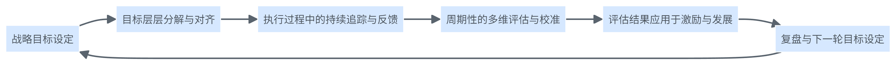 - 目标分解机制:公司/事业部目标拆到团队,再拆到个人,形成可追溯的父子关系。