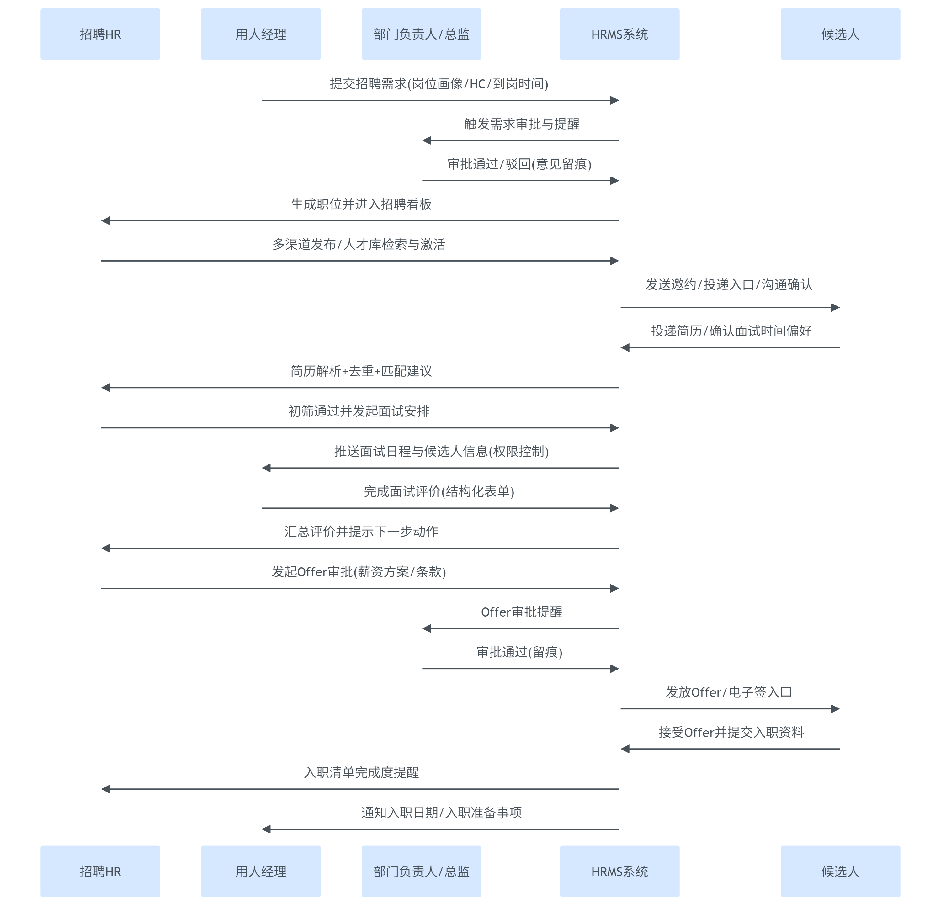(图表1:跨部门协同招聘的系统时序)