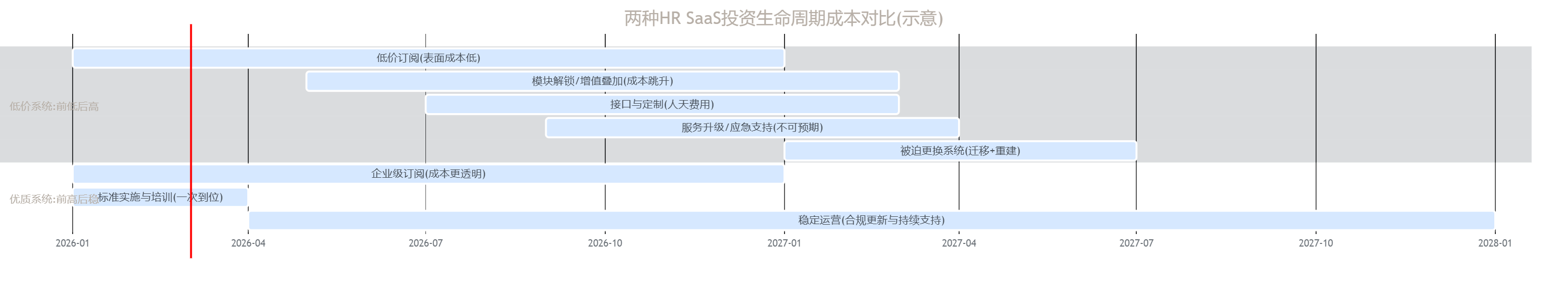 问题因此变得具体:低价HR SaaS系统有哪些隐形收费与服务缩水陷阱?如果企业不希望在一年内被迫换系统,应该如何把成本、风险与交付能力放到同一个框架里评估?