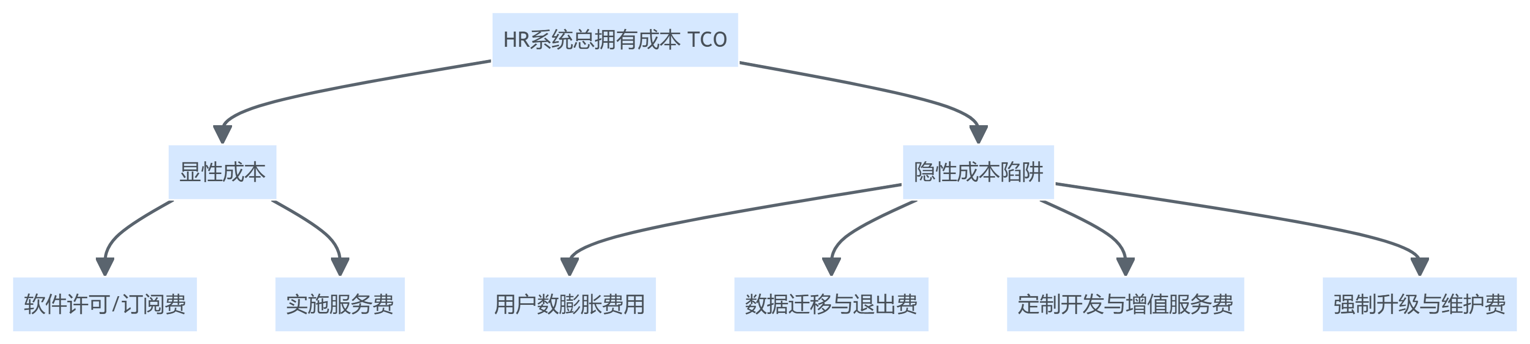 企业做HR数字化选型时,常见的决策路径是:功能对标—价格比价—试用评估—推进签约。真正的问题在于,很多供应商把“可变成本”埋在合同条款里:一开始看似预算可控,使用一年后却在账号数、接口调用、数据导出、实施变更、升级维护等环节不断追加费用。更现实的矛盾是:业务部门只看到上线速度,采购关注折扣,法务关注责任条款,而决定总拥有成本(TCO)的关键定义与计费口径,往往没有被跨部门逐条拆开。