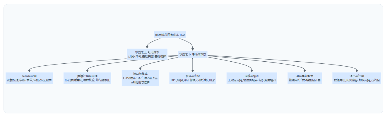 这一部分可以用一句类比帮助理解(本模块仅用一次):HR系统更像长期服务合同而不是一次性采购。理解这一点,选型的第一任务就从“买到便宜”转为“把未来成本写清楚”。