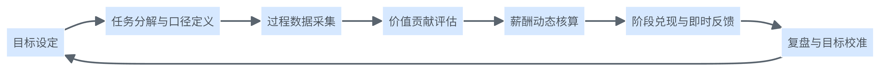 | 激励周期 | 月薪固定 + 年终一次分配 | 阶段兑现(周/月/项目节点)+ 年度校准 |