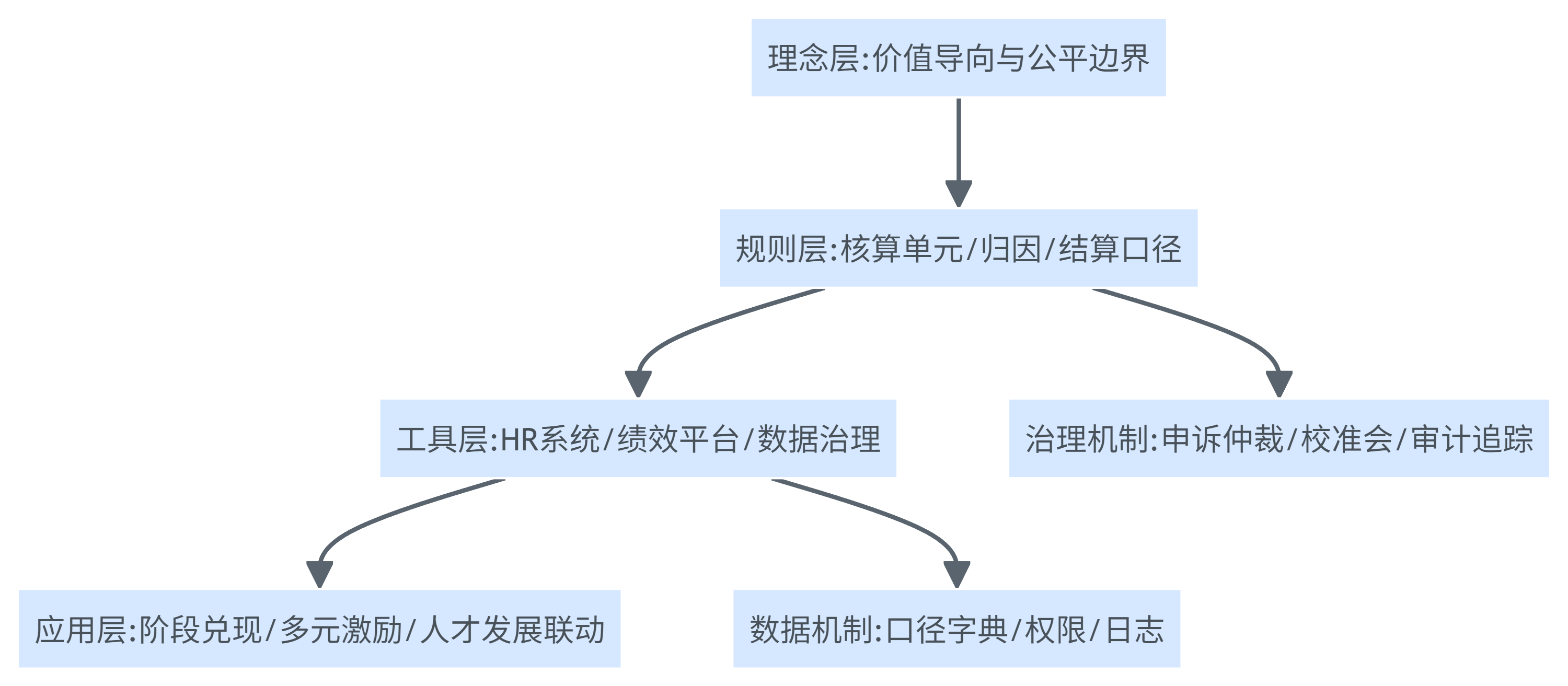 | 顶层设计 | 明确价值口径与权重;确定适用业务与岗位 | 激励地图、指标框架 | 口径过多导致执行失焦 |