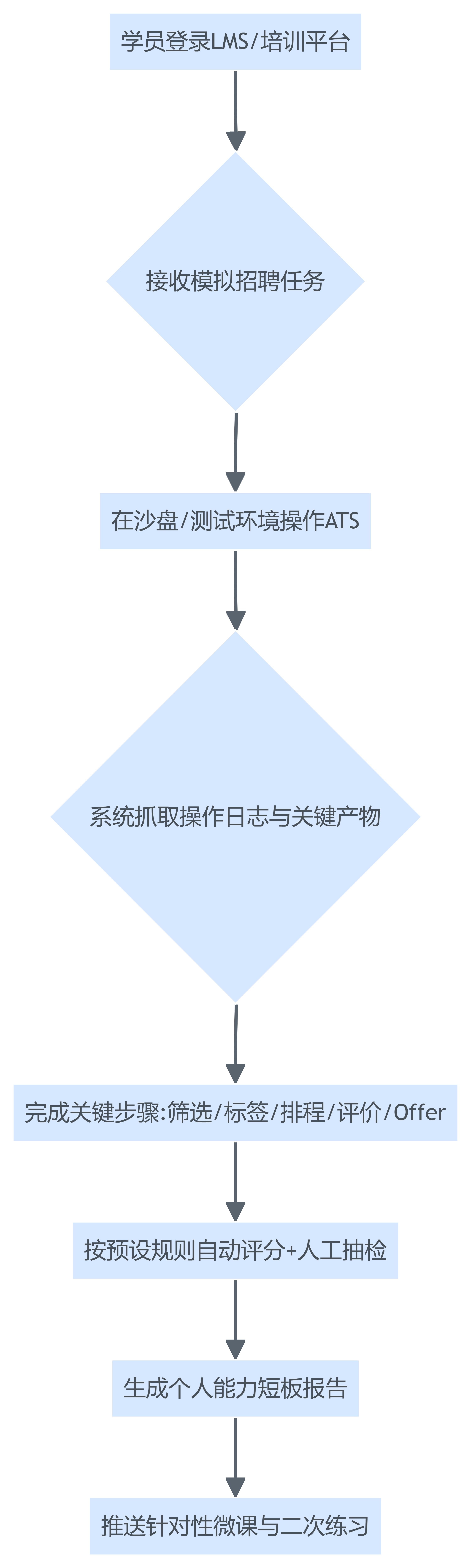 因此,学习层要从“知识点”转为“任务结果”,把考核设计成:给定招聘目标与约束条件,要求学员在限定时间内完成系统任务,并输出可以复核的产物(如筛选规则、候选人推进记录、报表解读结论)。