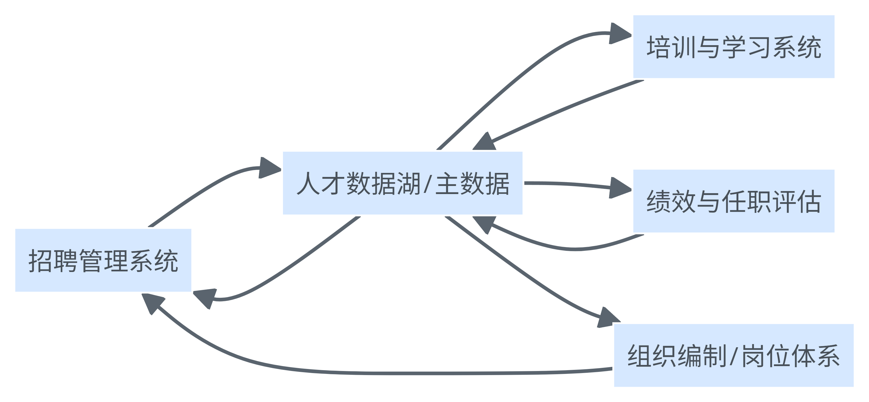 我们用结构图展示招聘管理系统在人才供应链闭环中的位置——它是入口,也是数据回路的一部分。
