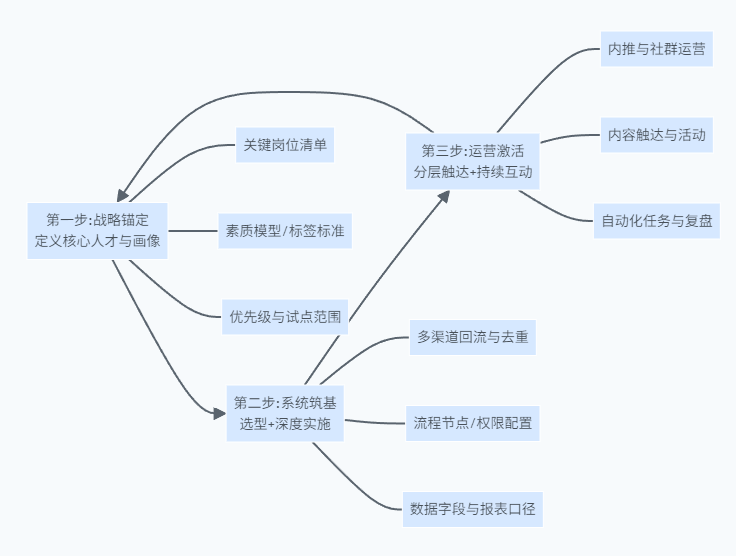 | 运营层面 | 分层激活、内容机制、触达节奏与持续复盘 | 重建设轻运营,人才库变成“沉默数据” |
