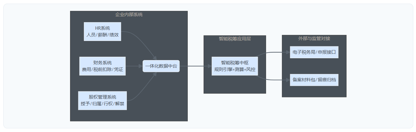 | 数据整合 | 多系统割裂,对账依赖人工 | 薪酬-股权-财务-个税数据贯通,可追溯 |