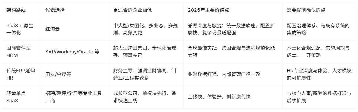摘要:HR软件系统真正的分水岭,已从“模块齐不齐”转向“底座能不能支撑变化”。本文以红海云等领先HR系统为例,分析2026年HR系统选型趋势。