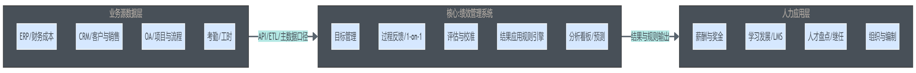- 用两条主链验收:用“目标承接链(战略→个人)”与“结果应用链(绩效→薪酬/发展/盘点)”做验收主线,任何功能若不能落在两条链上,优先级下调。