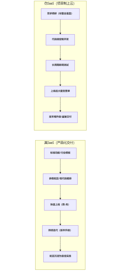 图表1:真SaaS vs 伪SaaS交付路径对比