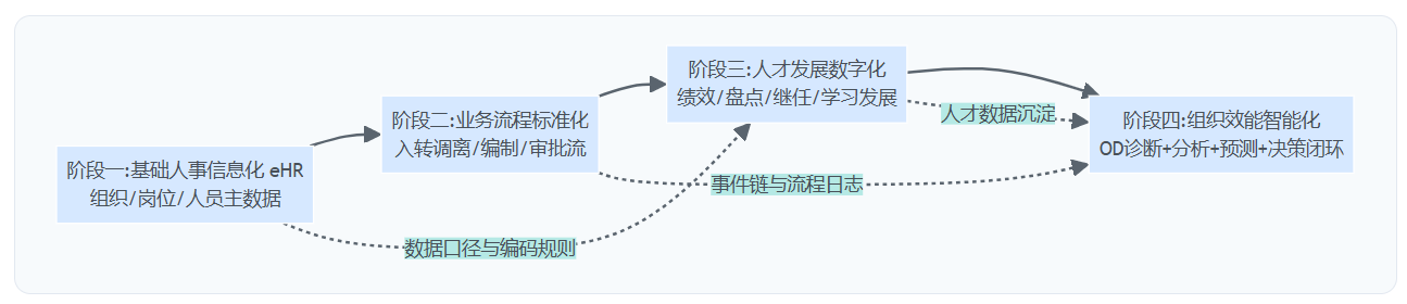 反例也要说明:并非所有企业都必须先把eHR做到极致才能做OD。对于小体量、组织结构简单、人员流动不复杂的企业,可以通过轻量化方式先跑通一两个OD闭环(例如关键岗位继任+发展计划),但前提依旧是主数据口径能锁定、流程能执行。