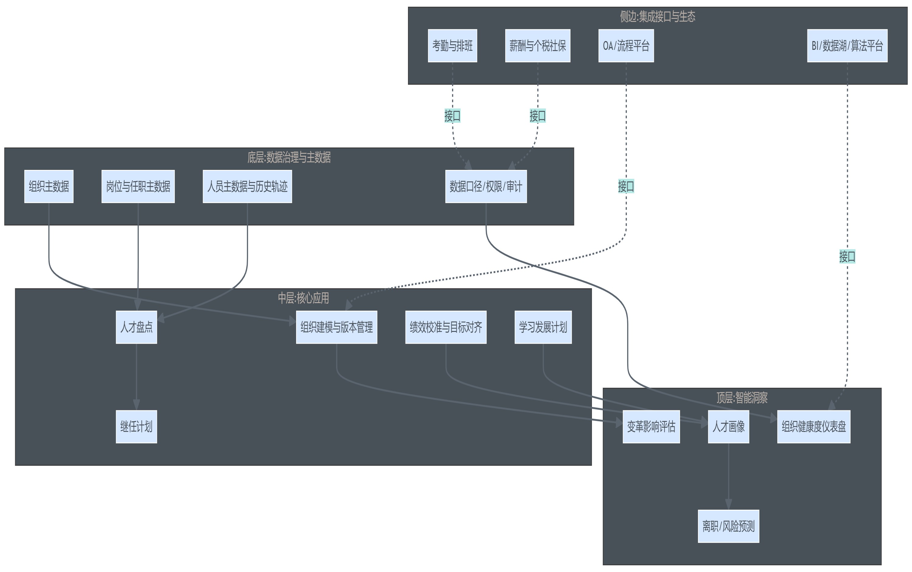- 若需要“为什么”(例如某事业部离职率上升与组织调整、薪酬带宽、管理跨度之间的关系),没有统一口径的主数据与事件链,结论不可复用。