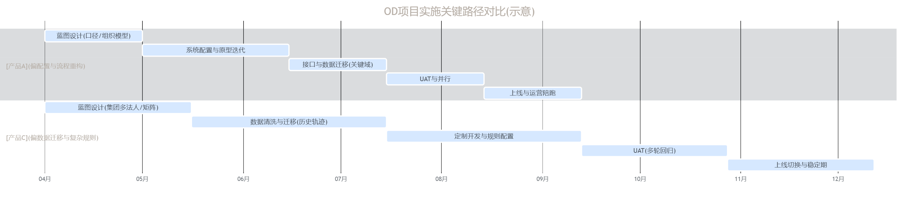 我们建议把实施周期拆成两条线:技术线与组织线。很多项目表面延期,真实原因是组织线没跑起来(业务不配合、口径争议、流程不落地)。