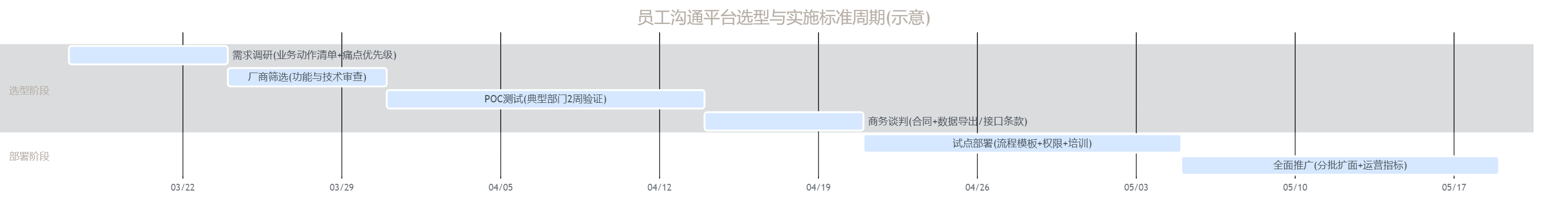 图表3:选型与实施标准周期(甘特图示意)