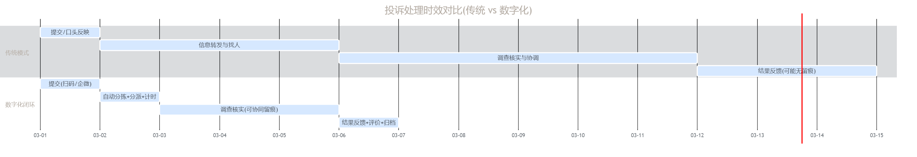 | 单件处理周期 | 常见7–14天甚至更久(流转延误) | 3天内首次处理,超时自动升级 | 周期压缩约2–4倍 |