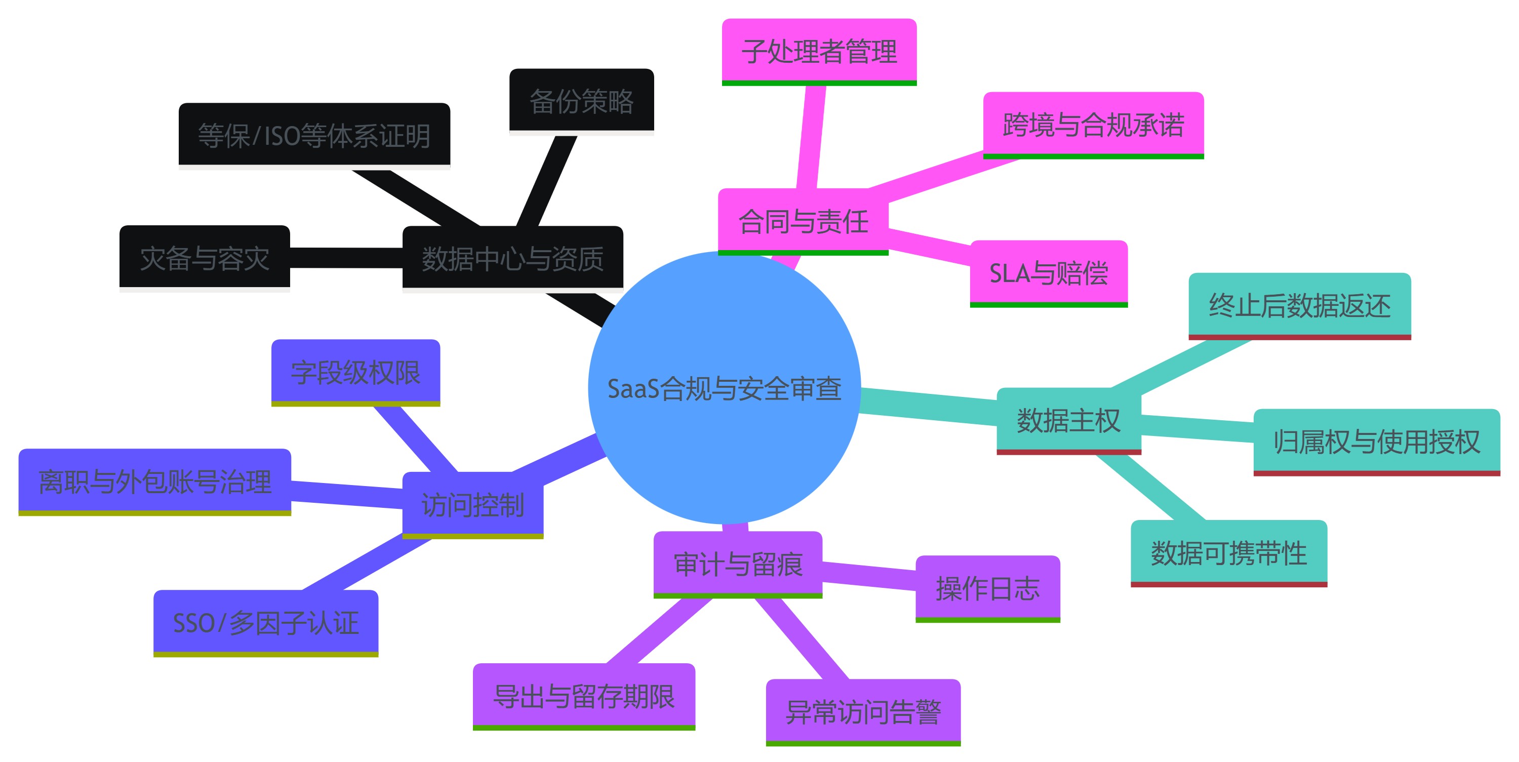 - 合同里必须写清三件事:数据归属与使用授权、SLA与赔偿边界、终止后数据返还格式/时限/费用。