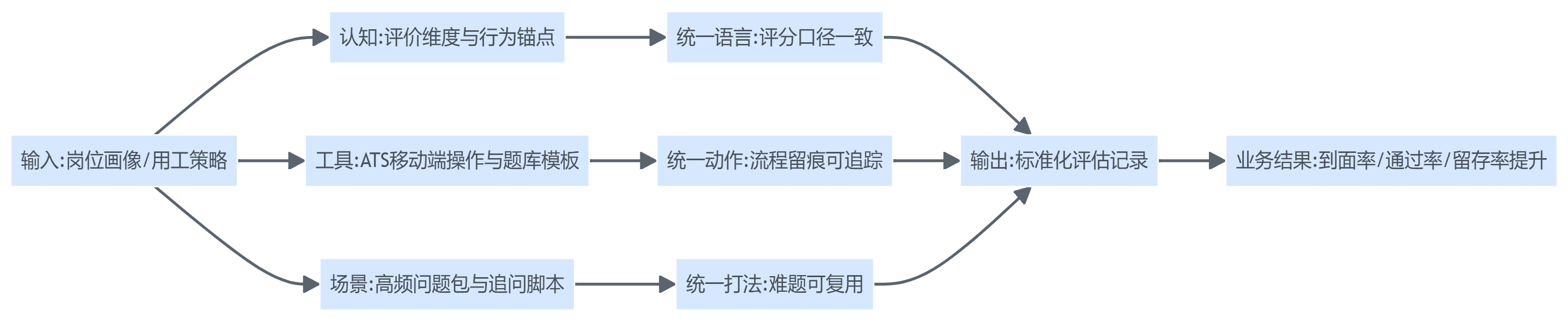 要让数千名门店面试官在短时间内形成一致判断,培训的最小闭环不是“上完课”,而是让他们同时具备三种能力:懂标准、会操作、能应对高频情境。