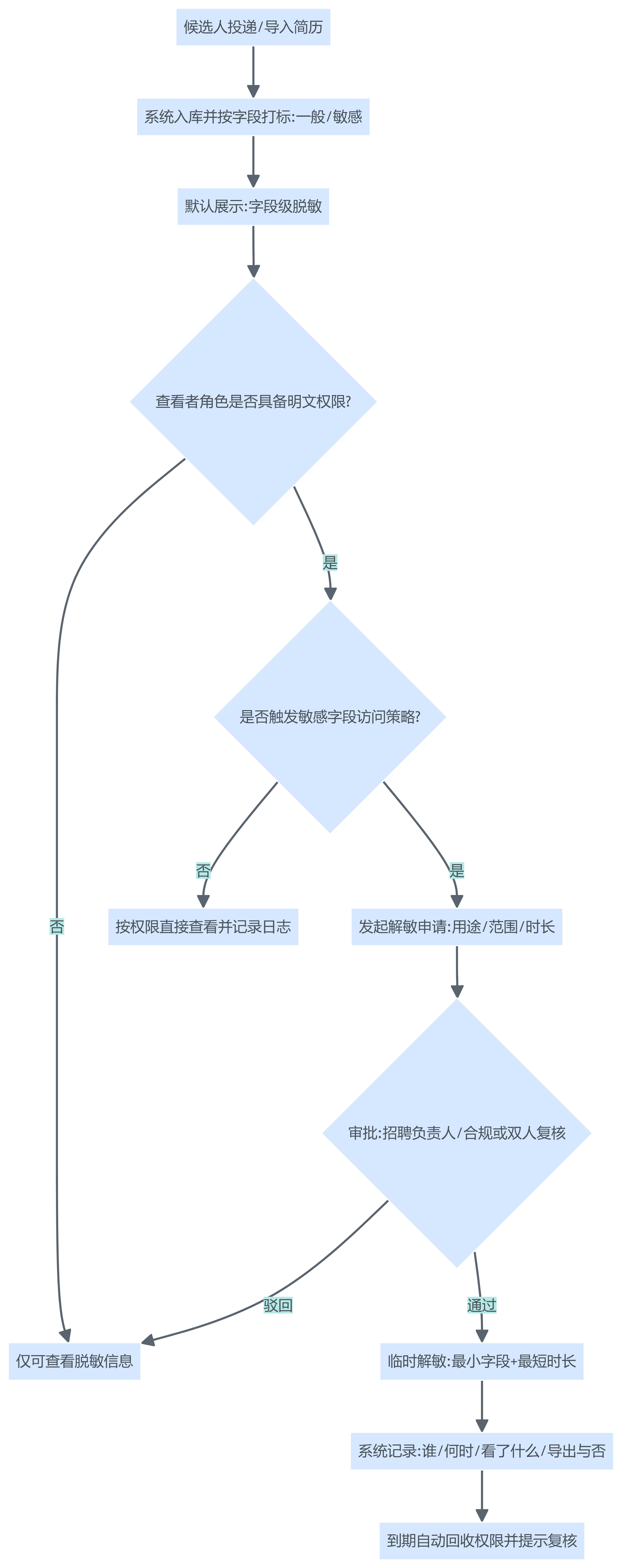 图表1:候选人简历脱敏查看与权限审批流程