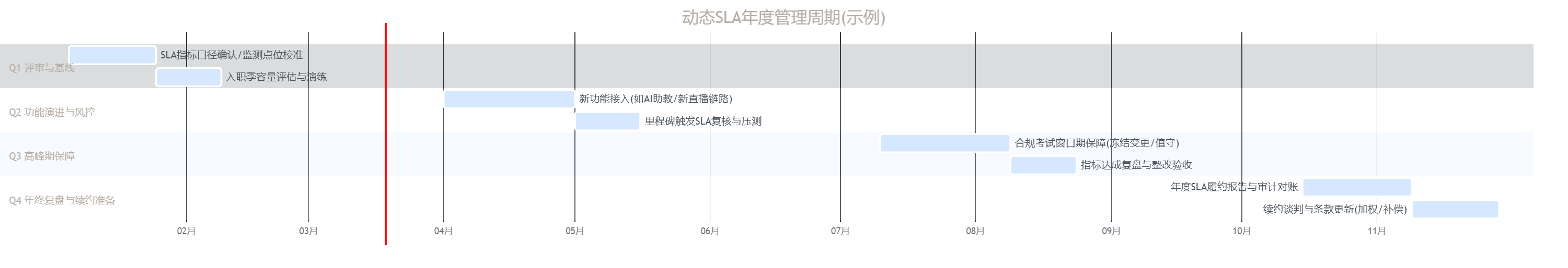 - 里程碑触发复核:重大版本发布、核心第三方替换、AI模型更新时,触发SLA口径复核与压测要求。