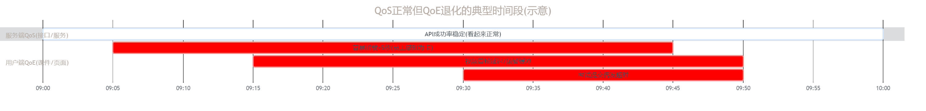 图表2:QoS(接口正常)与QoE(用户端卡顿)差距示意(时间轴)