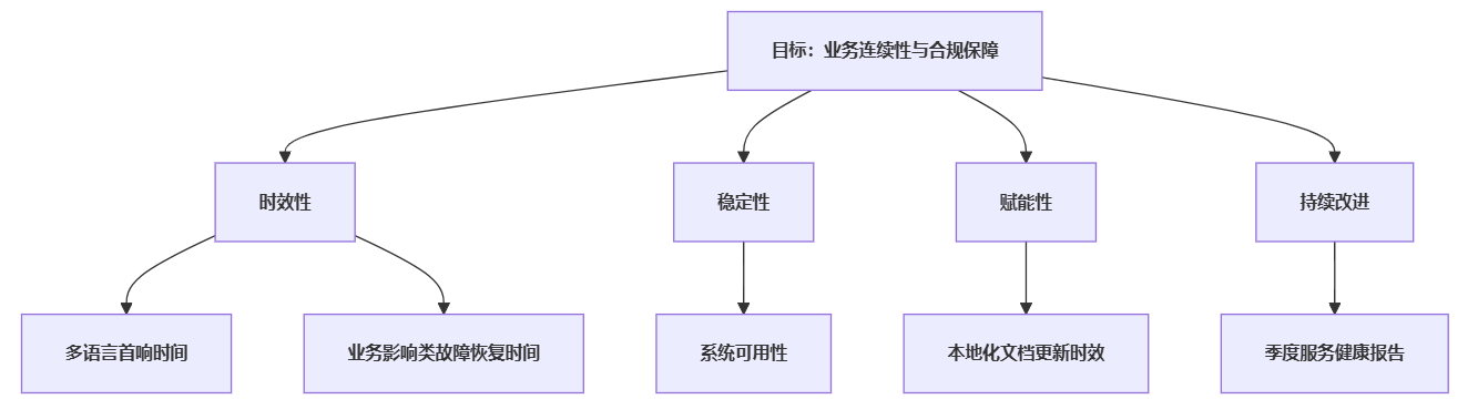 | 维度 | 通用SLA常见写法 | 外企本地化场景的必要补充 | 常见风险点 |