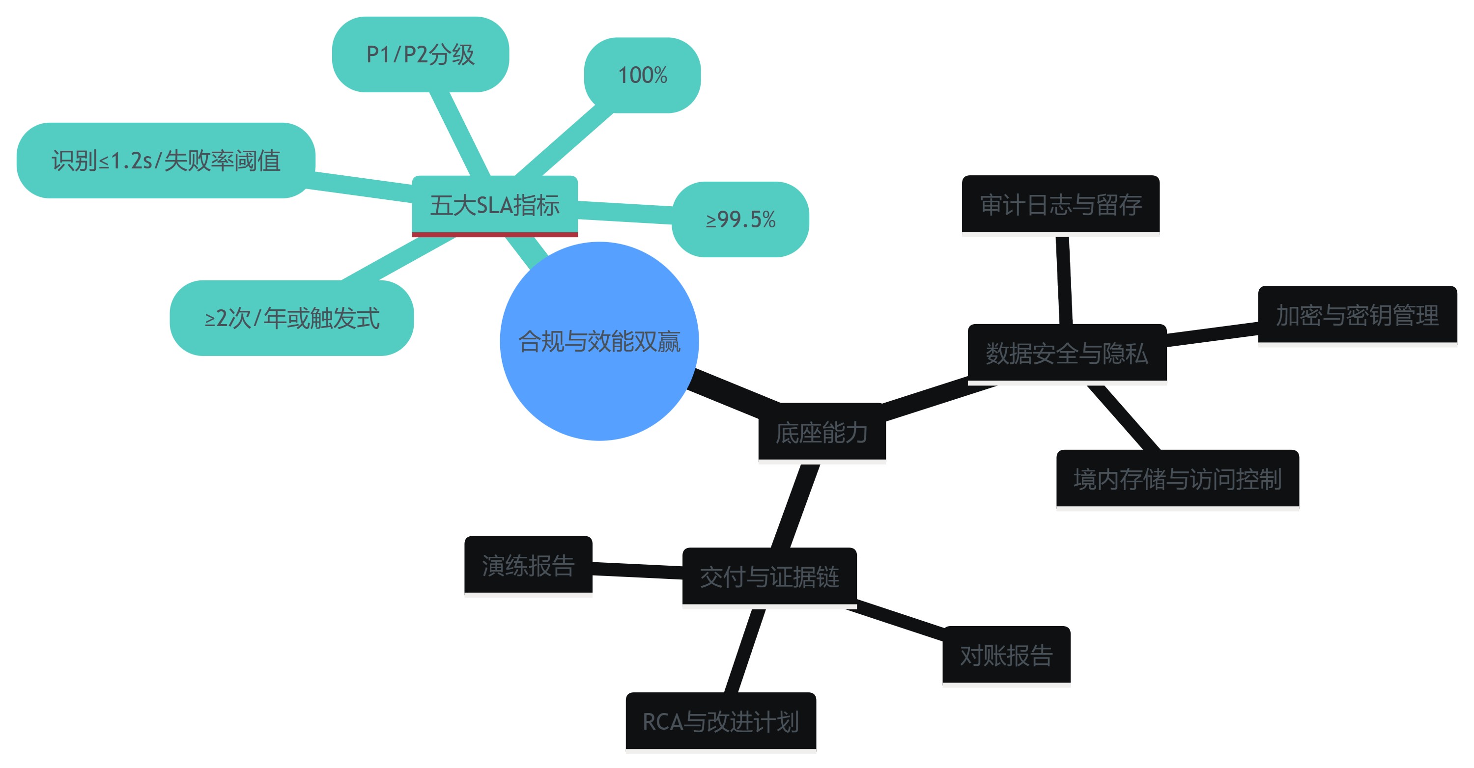 建议SLA对生物识别至少约定三类指标(数值可参考行业规范或招标要求,并结合企业环境压测后确定):