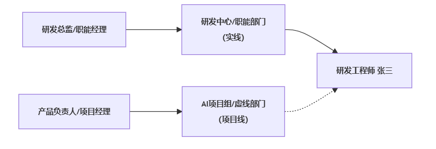 图表1:典型矩阵式汇报关系(实线 vs 虚线)