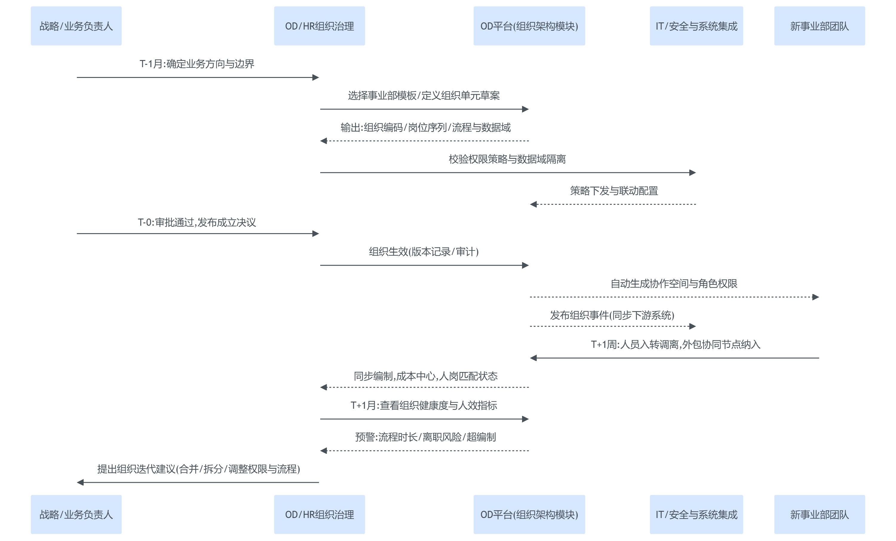 | 筹备期 | 定事业部类型与边界 | 选择模板;设定层级深度/管理幅度;定义数据域 | 组织单元草案、权责边界清单 |