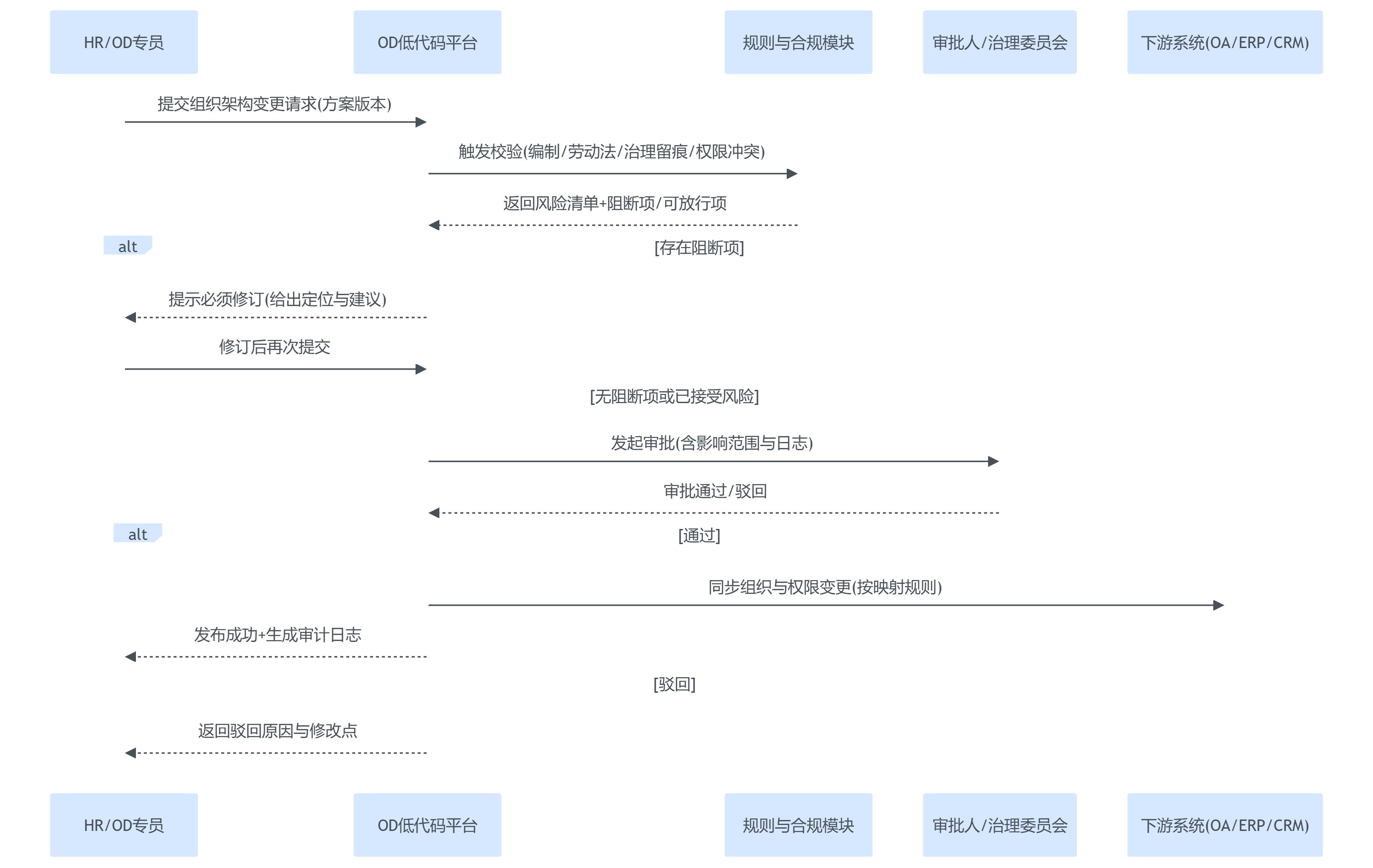 - 审批策略:L2必须进入OD治理委员会或CHRO授权流程;对连续变更(如同一部门30天内第二次调整)触发额外复盘节点。