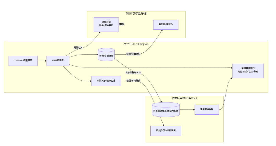 提醒一句:如果企业同时使用多个HR子系统(考勤一套、薪酬一套、招聘一套),RTO/RPO必须按端到端流程定义,否则单系统达标也可能在集成链路上失效。