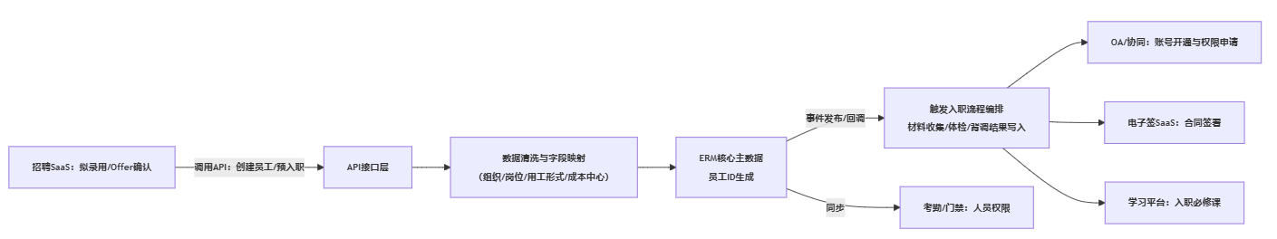 招聘到入职的断点,往往出现在“拟录用”之后:Offer、背调、入职材料、合同签署、账号开通、组织关系与成本归属,需要多部门协同。高扩展性API在这里通常承担三类接口职责: