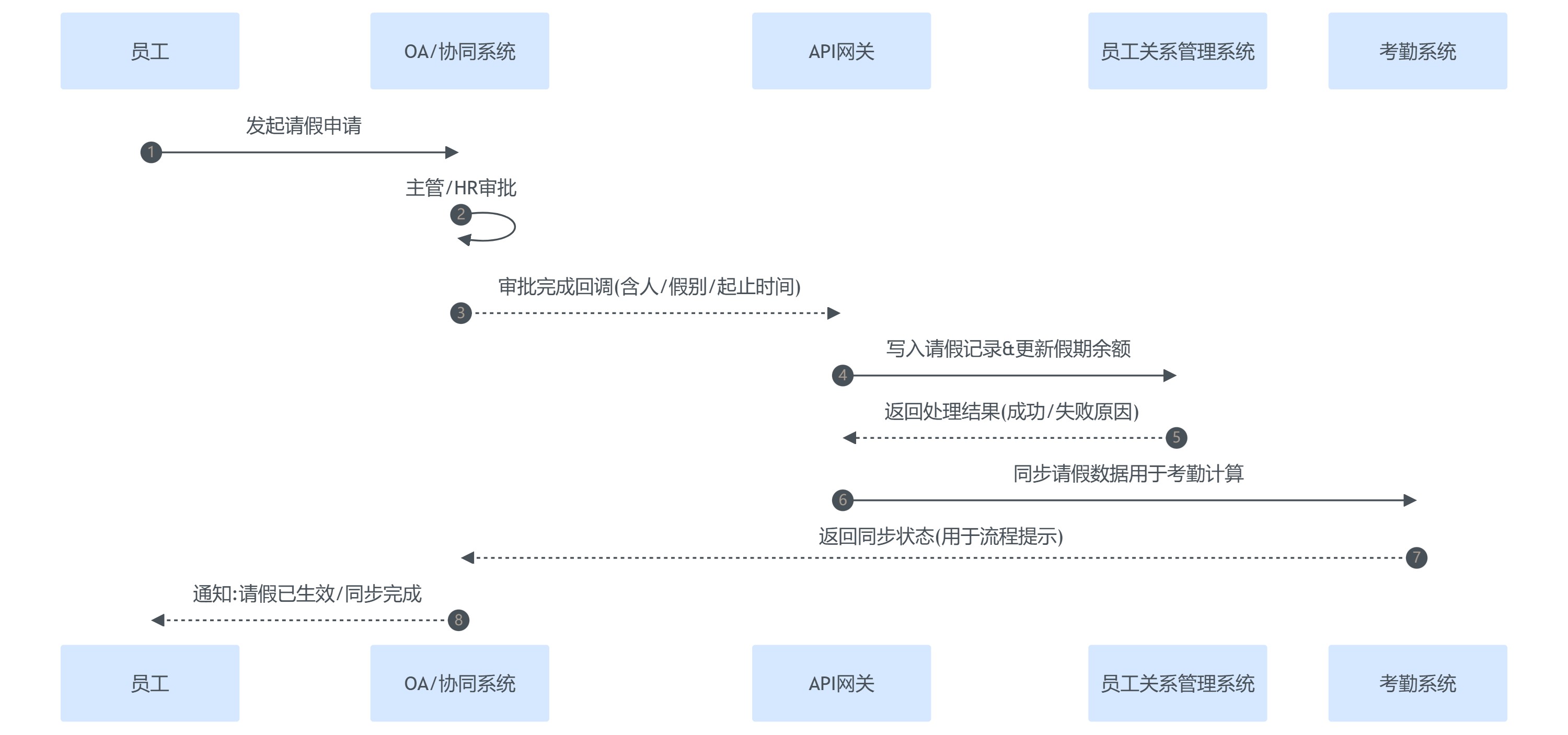 - 事件驱动同步:请假审批结束即回写假期余额、更新考勤规则计算口径,而不是月底批处理。