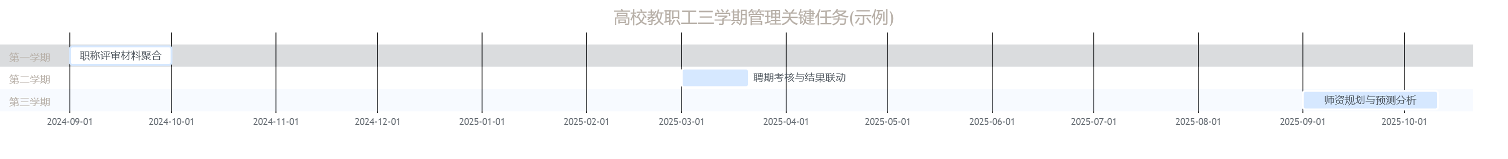三学期管理的核心不是“做三个页面”,而是打通职称评审—聘期考核—师资规划的连续链条:数据能聚合、结果能回写、变化能追溯。落地的关键在于把每一学期的业务事件变成可编排的数据同步与状态变更。