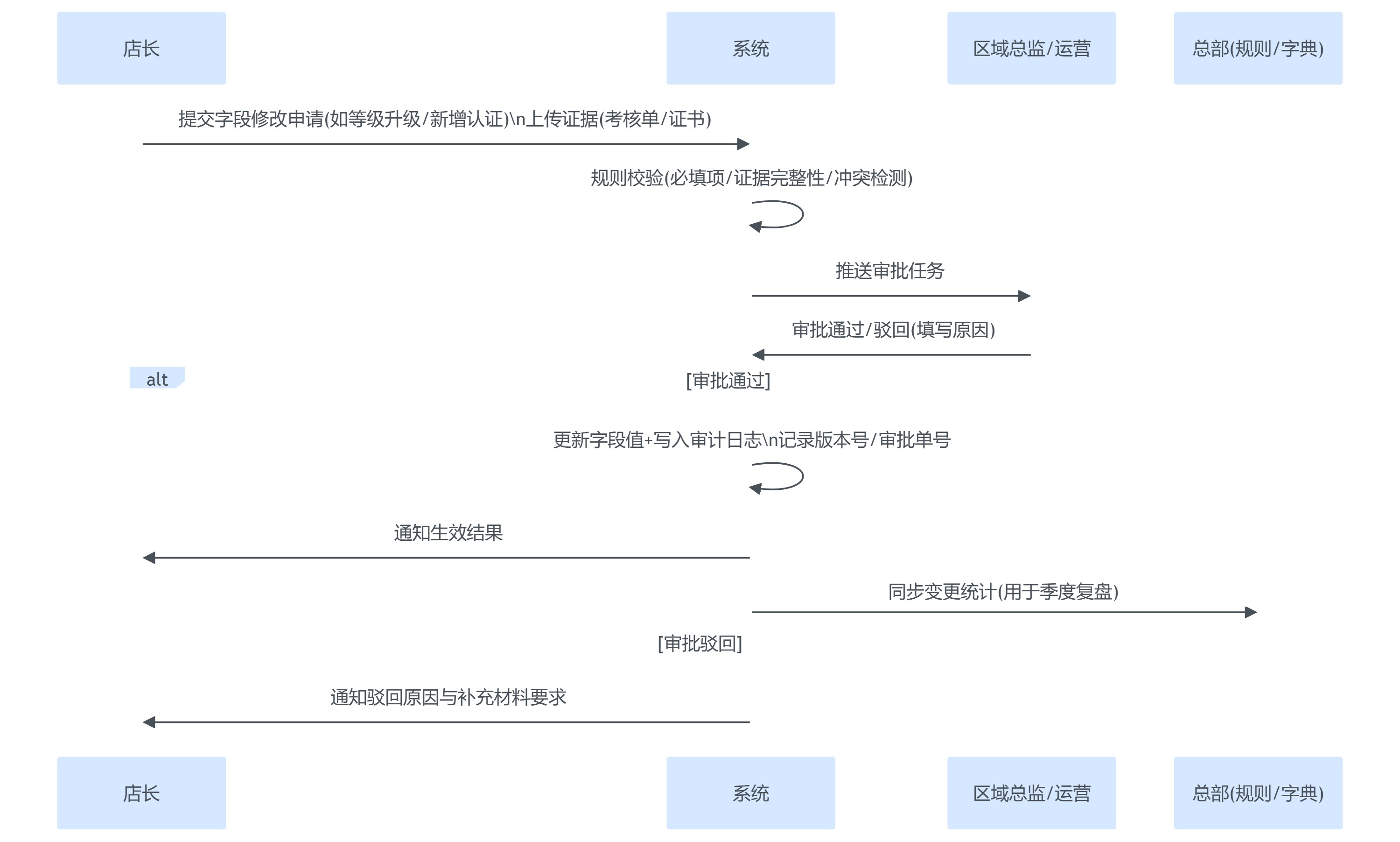 - 总部锁定“核心字段”(例如等级、关键认证、积分/星级),门店只能填值不能改选项;
