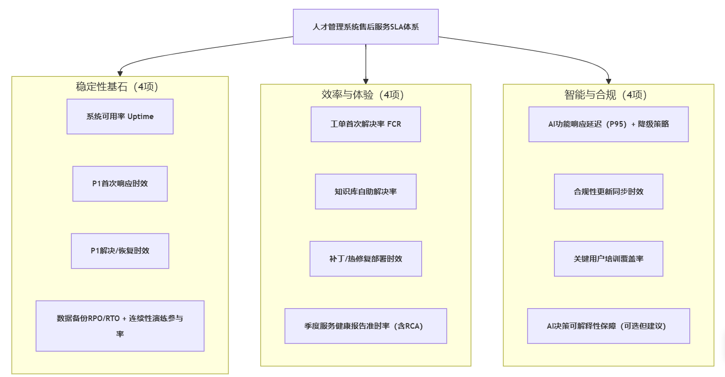 图表1+图表标题:2026年人才管理系统售后服务SLA指标体系架构图(12项指标归类)