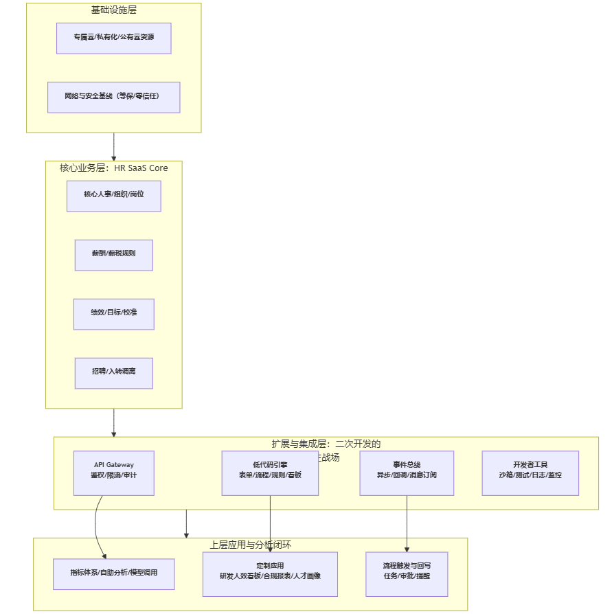 高科技企业的HR场景天然更“非标”,标准化SaaS往往只能解决通用事务,真正影响组织效率与人才决策的那部分需求,必须依赖可持续的二次开发与扩展能力。把它当作“售后加分项”,通常意味着把未来三年的变更成本留给自己消化。