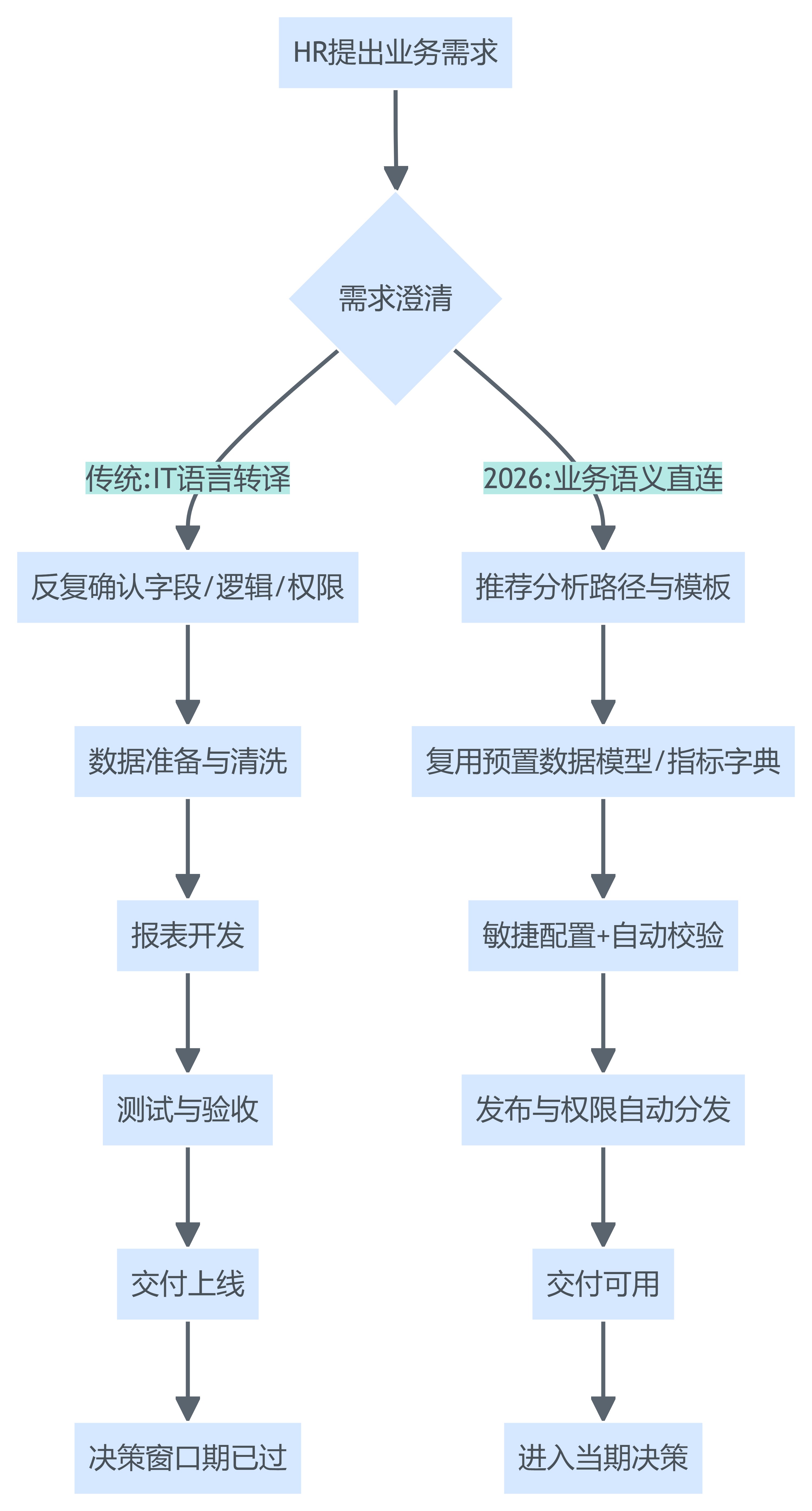 敏捷效能指标解决的是“等不起”的问题。HR分析一旦错过窗口期(如月度人力盘点、季度绩效、年度调薪、旺季招聘),洞察就会从“决策输入”退化为“复盘材料”。