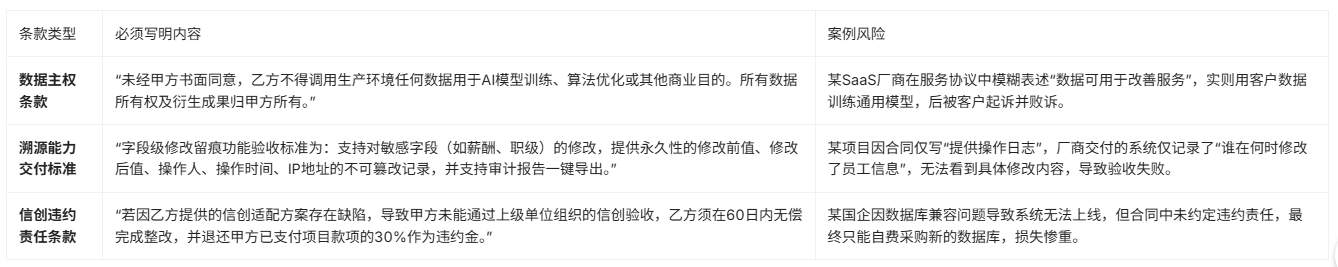 - 信创适配验收表:要求厂商提供所有核心组件(操作系统、数据库、中间件)的工信部信创产品认证编号,并写入合同附件。