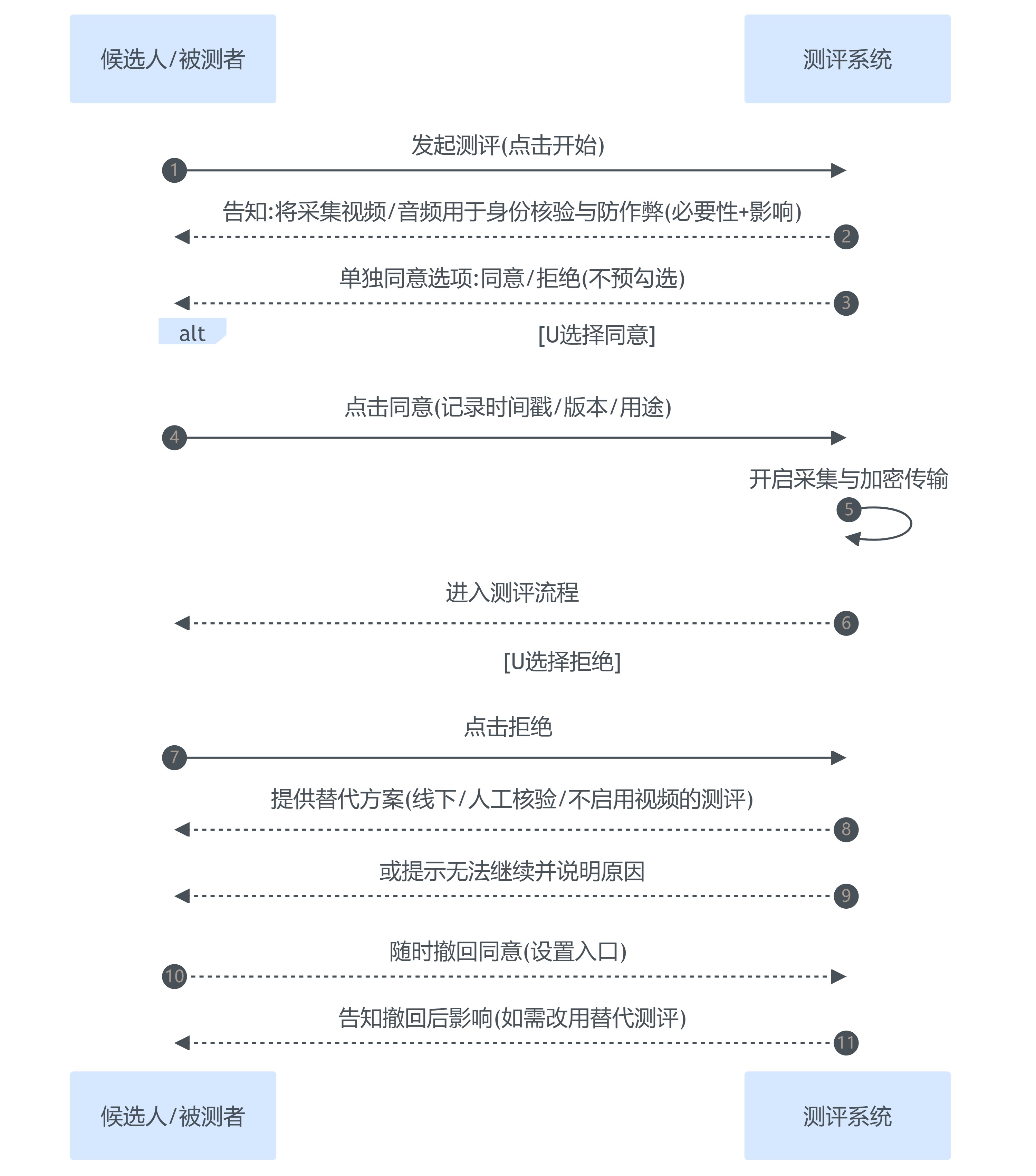 - 采集端:能用岗位信息与作答结果完成测评的,就不要强制采集身份证号、通讯录、精确定位;反作弊若能用限时与随机题库解决,就不应默认开启摄像头常开。