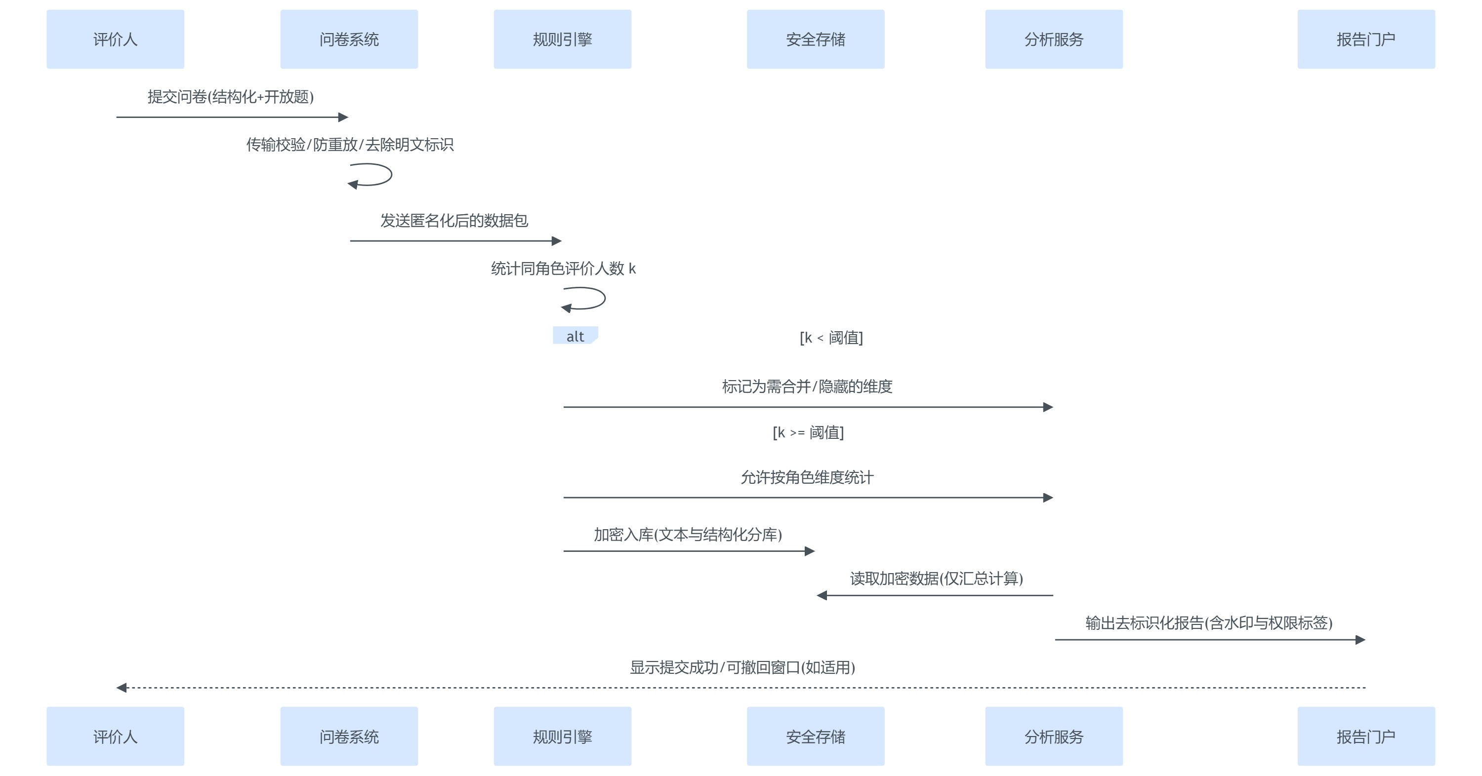 - 被评人:可查看个人发展报告(去标识化后的汇总、趋势、建议);不应看到原始答卷与任何可识别线索。