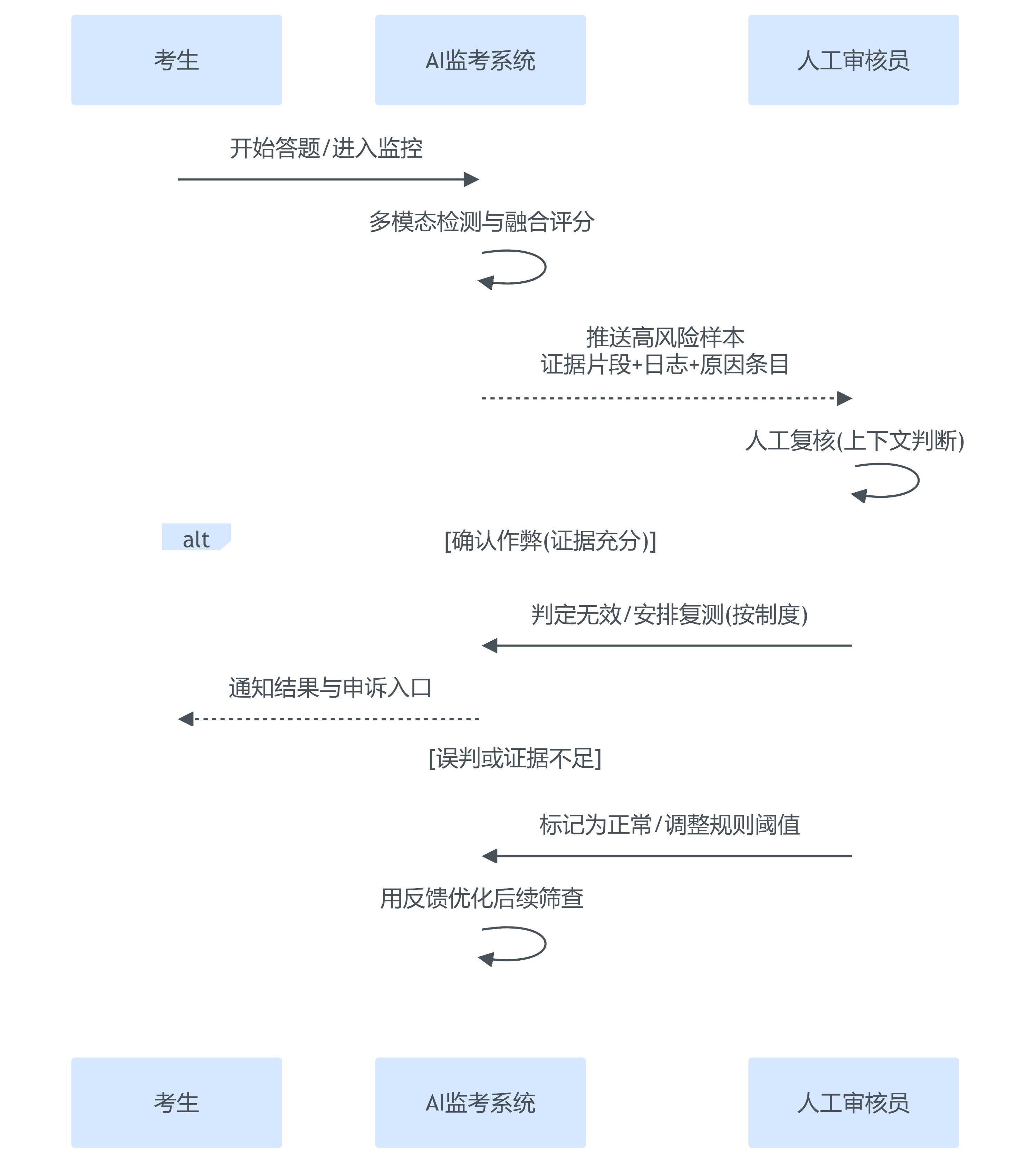 这里有一个重要边界条件:强干预(强制交卷、判定无效)不宜由单一模态触发。例如仅因“低头”就强制交卷,误判概率会很高;更合理的是基于“组合事件+高置信度阈值+可申诉证据”的策略。
