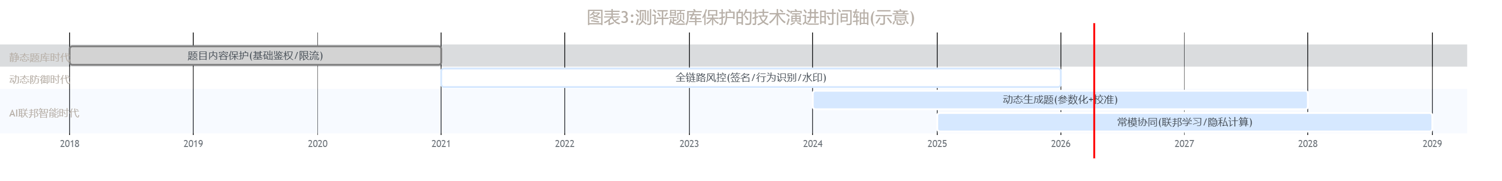 未来的题库保护不只是“守住一套静态题库”,而是把题库变成可持续演化的能力体系:题目可以动态生成、常模可以协同学习、权属可以被过程化记录。真正的变化,是保护对象从“题目文本”转向“生成与校准能力”。
