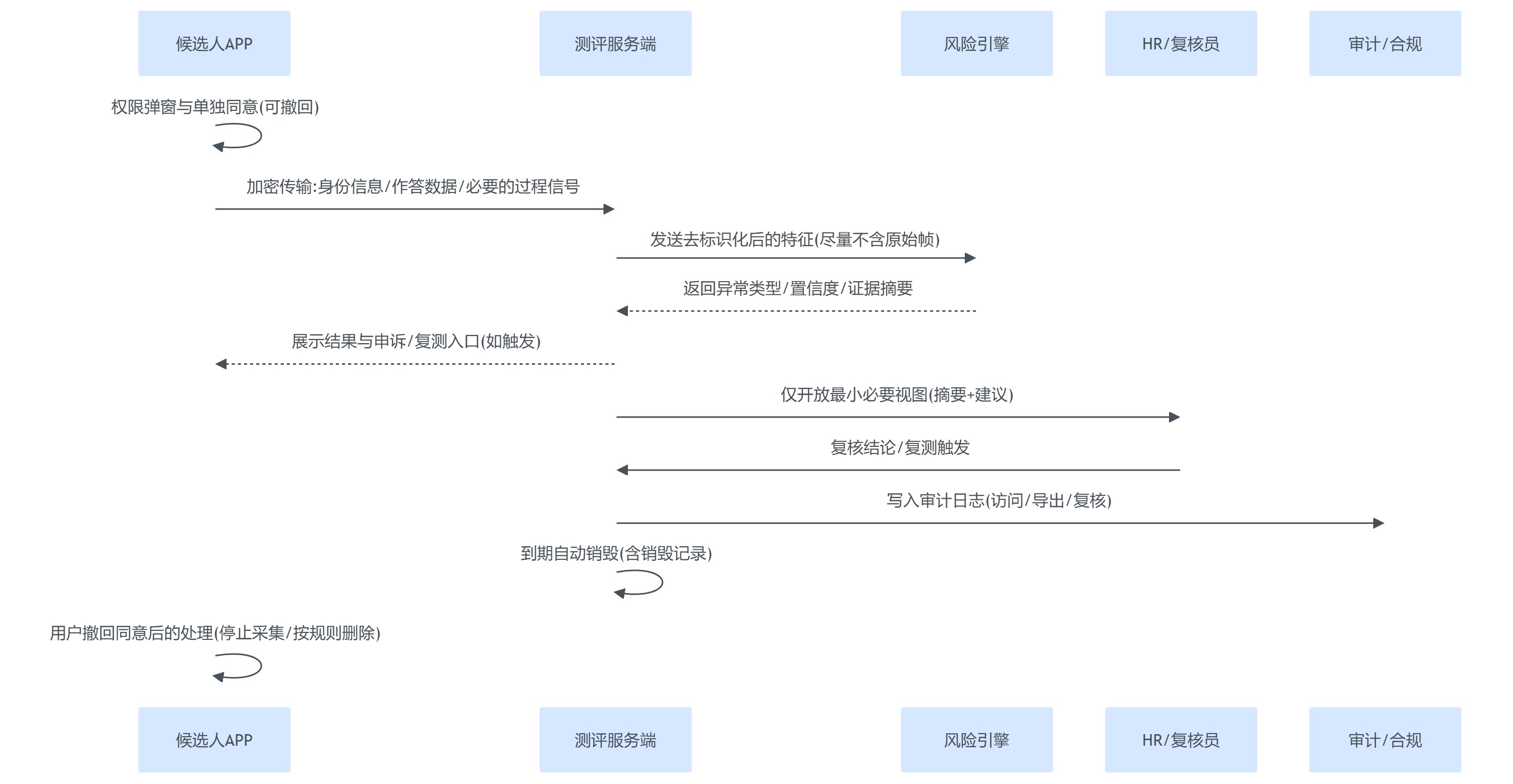 在APP端人才测评里,隐私保护不是技术团队的附属任务,而是能否持续开展测评业务的“准入条件”。企业真正要守住的,是三条底线:采集有边界、处理可审计、决策可复核。否则即便作弊抓得再准,也会在合规审计、候选人投诉或舆情中失分。
