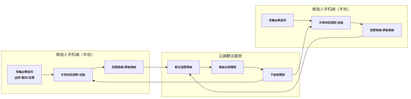 这样做的直接收益是缩小数据泄露面,降低集中存储带来的“单点爆炸”风险;间接收益是更容易向候选人解释——企业不是把你的原始生物数据集中存档,而是在本机完成必要计算。当然,联邦学习并不自动等于合规:如果端侧仍在持续采集敏感信息、仍缺少单独同意与撤回机制,法律风险并不会消失。