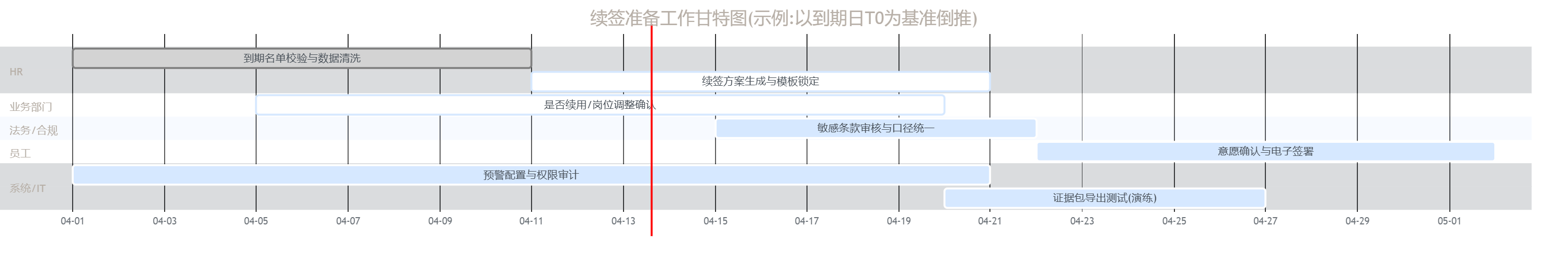 - 业务确认要前置:很多续签延误不是HR拖,而是业务迟迟不确认“要不要人”。把业务确认设为T-60前必须完成的节点,可以显著降低临期堆积。