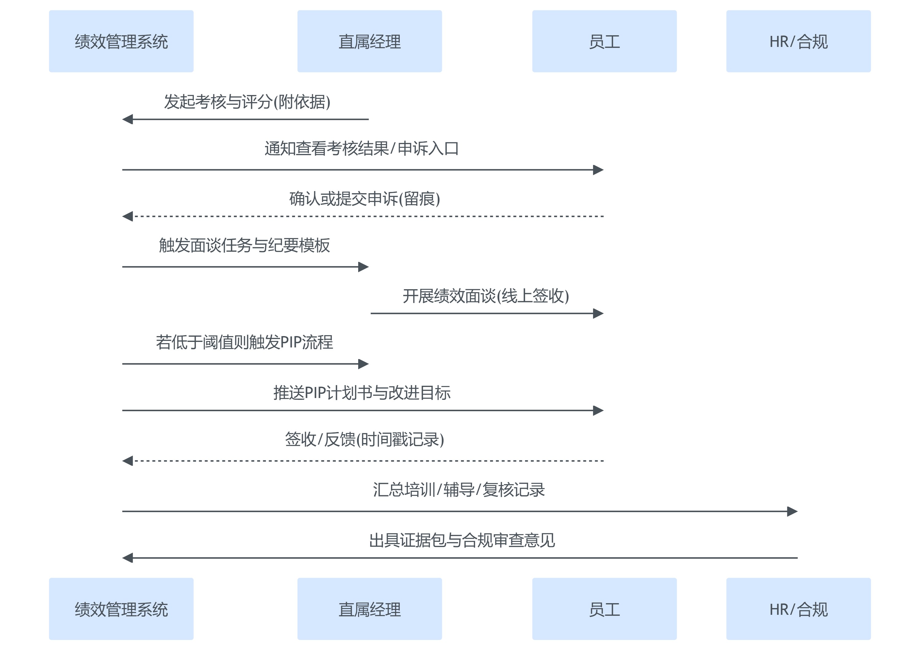 2. 缺失环节的数字化补全:PIP自动触发、面谈签收、培训/调岗记录的闭环设计